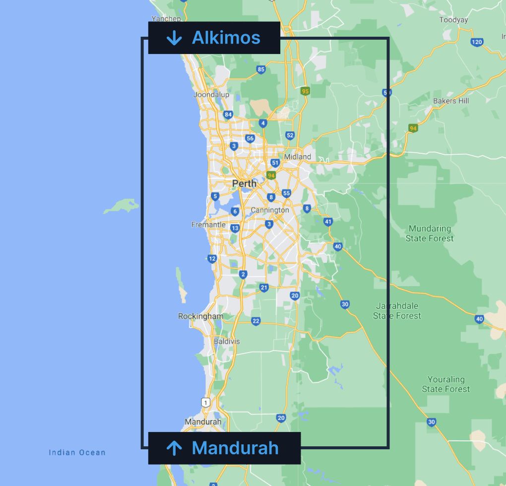 We service the whole of Perth, as far south as Rockingham, as far north as Yanchep, and as far east as Mundaring.
